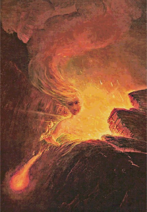 Legend has it that Pele was born of the female spirit Haumea, or Hina, who, like all other important Hawai’i gods and goddesses, descended from the supreme beings, Papa, or Earth Mother, and Wakea, Sky Father. Pele was among the first voyagers to sail to Hawai’i, pursued by her angry older sister, Na-maka-o-kaha’i because Pele had seduced her husband. Pele landed first on Kaua’i, but every time she thrust her o’o (digging stick) into the earth to dig a pit for her home, Na-maka-o-kaha’i, goddess of water and the sea, would flood it. Pele moved down the islands in order of their geological formation, eventually landing on the Big Island’s Mauna Loa, which is the tallest mountain on earth when measured from its base at the bottom of the ocean. Even Na-maka-o-kaha’i could not send the ocean’s waves high enough on Mauna Loa to drown Pele’s fires, so Pele established her home on its slopes.