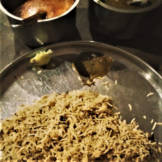 Tucked away in the bylanes of Vijayawada, a small, historic town in the heart of Andhra Pradesh, is a little hole-in-the-wall called Hotel Srinivasa that serves the most fantastic biryani I have ever eaten! Subtle yet superb flavors, meat falling off the bone and fabulous condiments like mutton salan (gravy) and gongura chutney make this biryani an experience like no other. They serve generous quantities, heaped onto your plate. Though neither of us spoke the language of the other, the owner even got me a bowl of his personal, special salan simply because I looked so obviously delighted as I was stuffing my face!