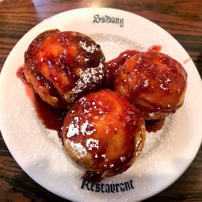 This delicious Danish dessert, is like a kind of cross between a donut and a pancake. Served as little fried balls, aebleskivers are topped up with raspberry jam and powdered sugar. For those who like me have never been to Denmark and always wanted to go, do try to visit Solvang, a quaint little Danish town about 2 hours outside of LA. In the heart of the little town, Solvang Restaurant serves these little beauties. Thank me later.